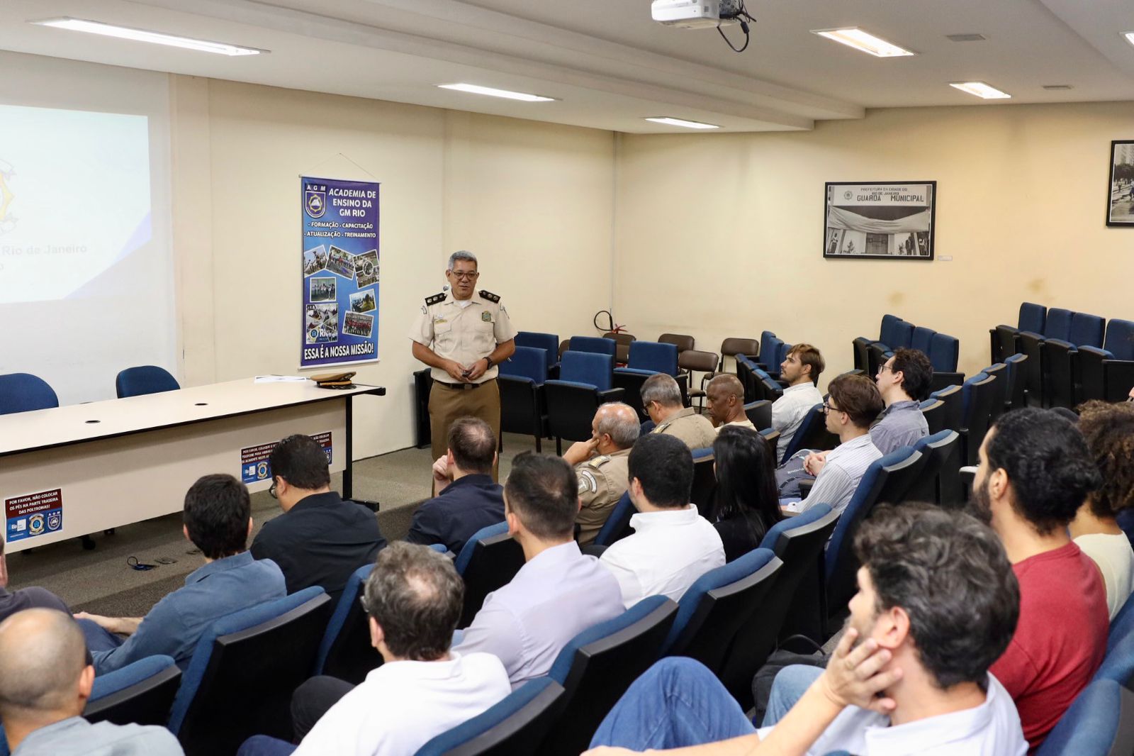 Eles foram recepcionados pelo comandante da instituição, inspetor geral Itaharassi Bonfim Junior. Em seguida, assistiram a uma apresentação sobre o funcionamento da GM-Rio feita pelo diretor de Recursos Humanos, inspetor Genésio Gregório. O encontro também contou com a presença dos diretores de Operações e Financeiro, inspetores Ananias Brum e Felício Barcellos; do assessor da Corregedoria, inspetor Maxliber; além do coordenador de Planejamento e Desenvolvimento de Pessoal (CPDP), inspetor Idnei Teixeira.